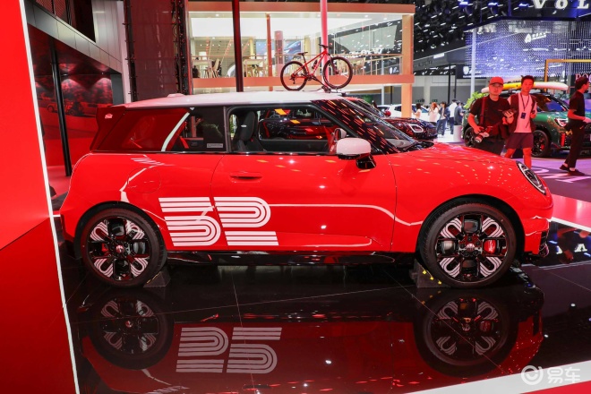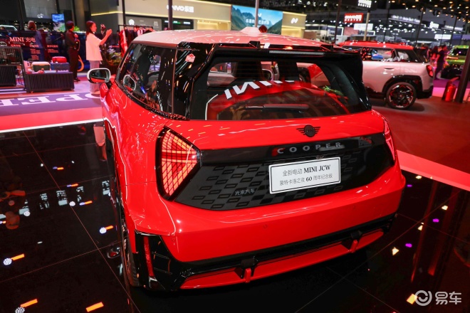造型方面,全新电动MINI JCW蒙特卡洛之夜60周年纪念版基于全新电动MINI JCW打造,采用非常抢眼的红色车漆搭配被色车顶,前脸搭载的英国车牌是为了致敬1965年在蒙特卡洛拉力赛夺冠的经典MINI,新车还采用了更加动感的黑色车标。