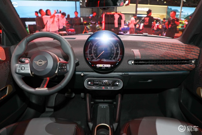 内饰方面,新车在全新电动MINI JCW的基础上采用与外观一致的红黑双色搭配,中控台依然为熟悉的圆形OLED显示屏,内置第9代MINI操作系统,信息交互更加丝滑。此外,新车还采用红色安全带、带1965标识迎宾踏板、带52号标识的车钥匙,同时还有1965纪念纹饰储物盒。