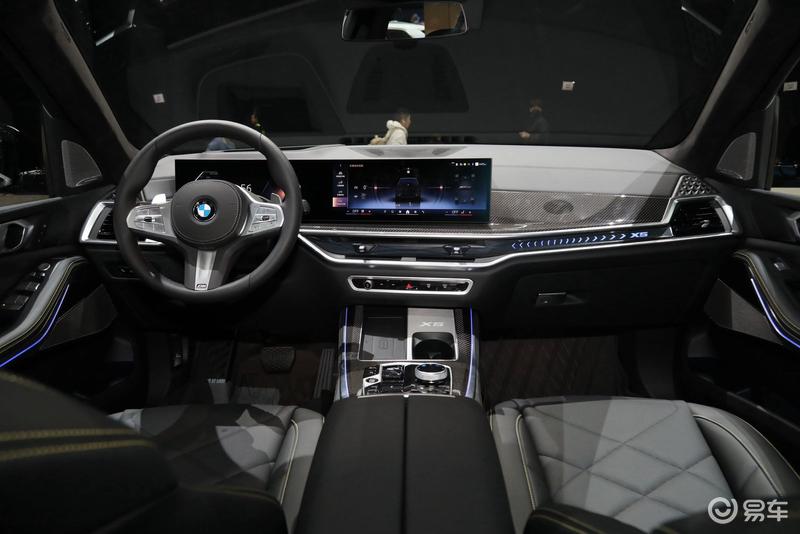 外观方面,新款宝马X5在售的四款车型全系搭载M运动曜夜套装,M运动曜夜套装对外观进行了多项黑化处理,包括前后保险杠饰条、鲨鱼腮、黑色窗框以及黑色行李架等,视觉感更加运动。