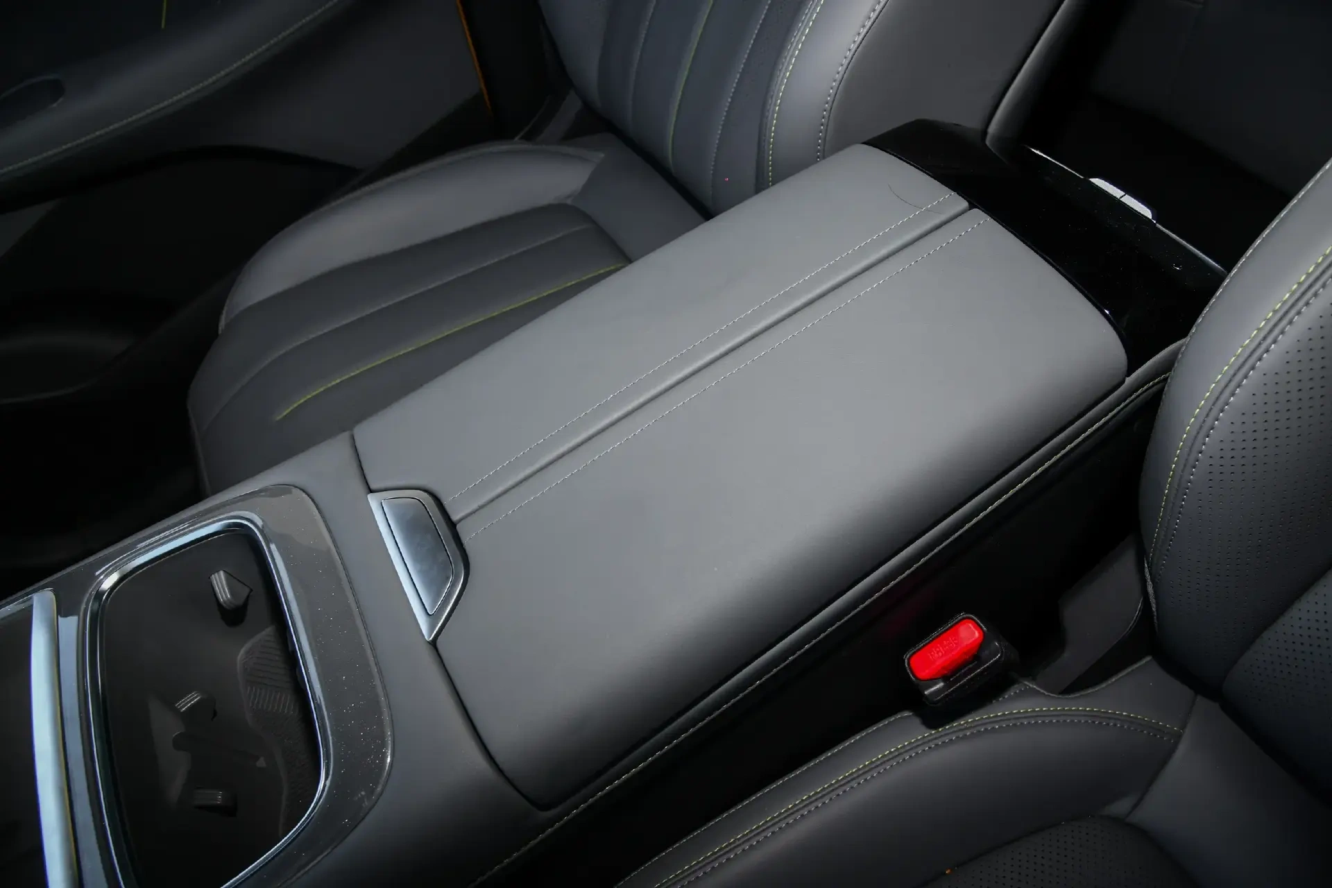 至于说座舱的装饰方面,它的用料肯定没有达到问界之类的水平,但质感上跟尚界H5倒也没有差距,而且舱内会在许多软包上采用更多亮色来装饰绗缝,效果上还是偏向年轻化。同时,除了软包面积可观的贯穿扶手外,所有座椅都提供了带侧翼的头枕,尽管带腿托的零重力座椅是属于Ultra车型的,但Max车型的工艺细节也值得表扬。