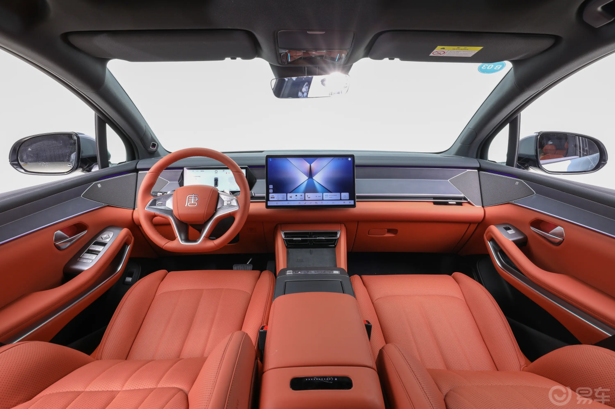 内饰是用户日常接触最多的区域,两款车的配置逻辑差异显著。唐L EV延续国潮设计风格,内饰设计巧思融入中国传统建筑中的庑殿顶元素,中控台顶部轮廓借鉴庑殿顶的坡面造型与规整屋脊线条。