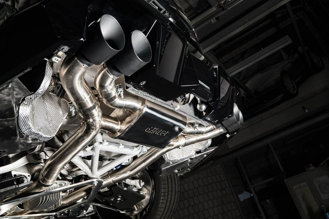 动力的提升也伴随着更强劲的声浪,dÄHLer提供不锈钢运动型排气系统,搭配黑色双排气管,提供有直径108 mm和114mm规格可选,以及双气门控制系统,同时还可选配开关阀门遥控器。此外还可根据客户需求,搭配碳纤维进气口,同样经过认证。