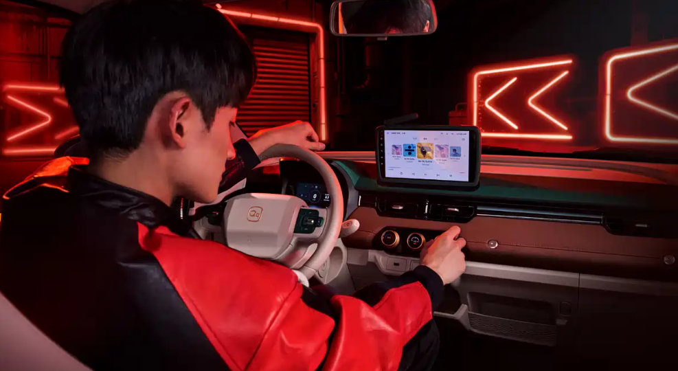 如奇瑞新能源QQ冰淇淋便是这么做的,近期奇瑞汽车官方发布了一组2026款QQ冰淇淋的官图。从图片来看,新车汇集了诸多复古设计元素,包括棕色仿木纹装饰、镀铬金属元素、银耳外后视镜、车顶行李架等,搭配镜面轮辋造型,迎合了普通消费者对个性化审美的偏好。值得一提的是,同样的设计元素也曾出现在奇瑞旗下新能源品牌iCAR V23的2025款CYBERSPACE复古版车型身上,车辆采用乳白色复古手饼状轮毂、棕色木纹+镀铬装饰保险杠、顶置四目探照灯、镀铬金属蜂窝护网等设计,视觉风格精致立体,辨识度突出。