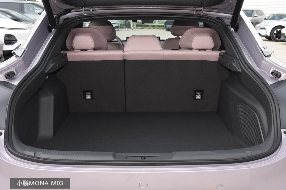 再来看储物上,因为两台车都是掀背车,并带有电动记忆尾门,所以装卸存取都是很方便的。像小鹏M03的600L后备厢足够容纳3-5个拉杆箱,要是装上些特产或是给爸妈买个按摩仪、泡脚桶等等,也能同时放下一家三口的行李箱。