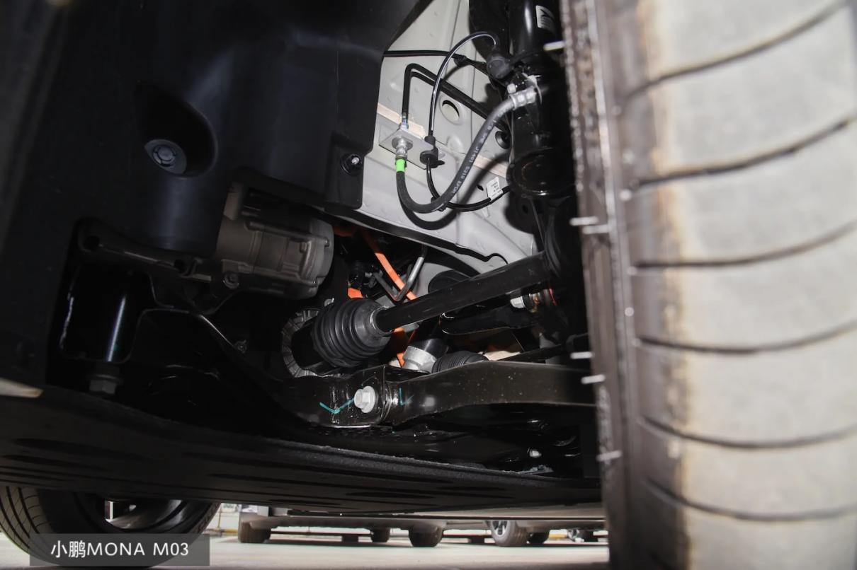 小鹏M03在这方面相对保守些,前麦弗逊式独立悬架会与后桥的扭力梁式非独立悬架配对,在高速、在城市里的铺装路上还是比较舒适的,但遇到雨雪天湿滑路面,或是什么大弯道环岛、环山公路之类的情况,支撑稳定性就要差些。