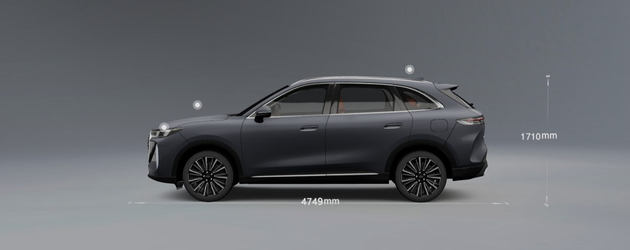 车身侧面,虎款与豹款造型保持一致,均配备半隐藏式车门外拉手及19英寸轮圈。车身尺寸方面,新车长宽高分别为 4749/1880/1710mm,轴距达 2825mm,为车内空间提供基础保障。