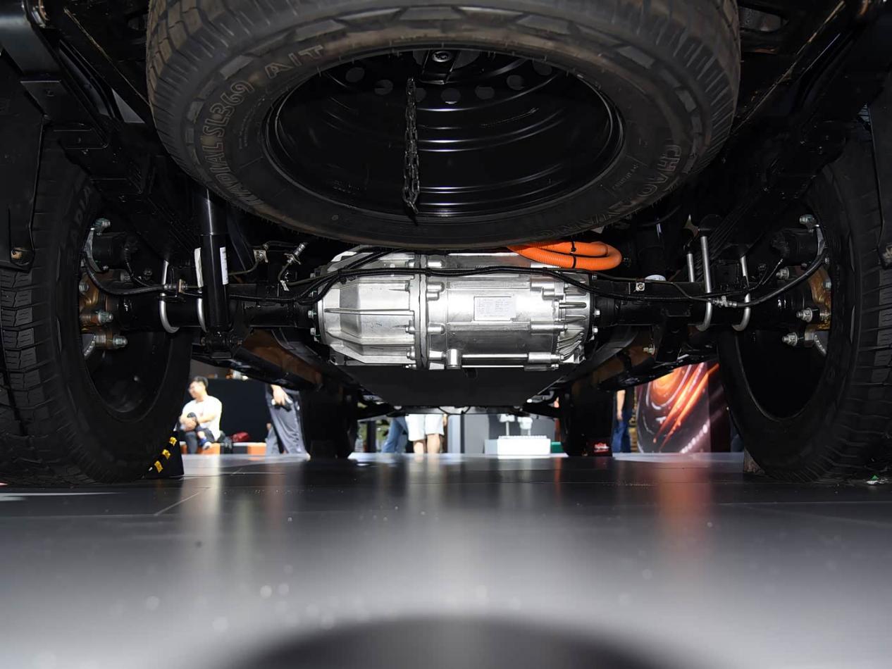 底盘操控方面,新车采用专业的非承载式车身结构,配备独立的梯形车架,从根本上杜绝了因长期重压导致的车身变形问题,耐用性极高,为后续加装专业设备提供了坚实的改装基础。悬架系统采用前双叉臂独立悬架与后钢板弹簧非独立悬架的组合,前者提升了重载下的操控稳定性,后者则能有效应对电池及货物的重量。电池包的离地间隙达到了240毫米,兼顾了复杂路况下的通过性与电池包的安全。