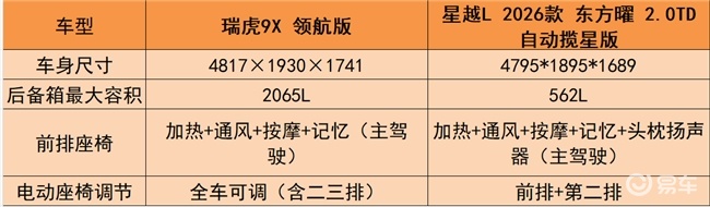 吉利星越L和瑞虎9X哪个好?瑞虎9X领航版打造超大空间和后备箱容积,更适合大家庭