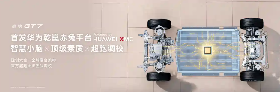 底盘方面,启境GT7首发搭载华为乾崑赤兔平台,搭配HUAWEI XMC乾崑数字底盘引擎,配备双腔空气悬架,底盘调校团队还有参与过国际高端性能车项目的工程师加持,操控质感偏向沉稳舒适,兼顾家用舒适性与一定的驾控乐趣。