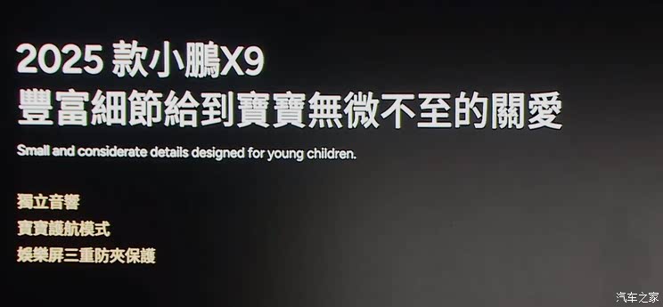 [车讯 新车上市] 4月15日,小鹏汽车在香港举办了小鹏全球热爱之夜,2025款小鹏X9(参数|询价)正式上市,共推出4款车型,售价区间为35.98-41.98万元。新车作为年代改款车型,主要在配置方面进行了调整,将全系标配主动后轮转向,最小转弯半径低至5.4米。同时,在智能驾驶方面,2025款小鹏X9全系标配图灵AI智驾,回归纯视觉方案。2025款小鹏X9也将在4月23日上海车展期间亮相。